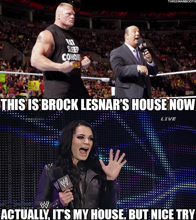Paul Heyman tells the WWE Universe that this is Brock Lesnar’s House Now. Heyman says Lesnar conquered the WWE Universe, so they are all his servants.