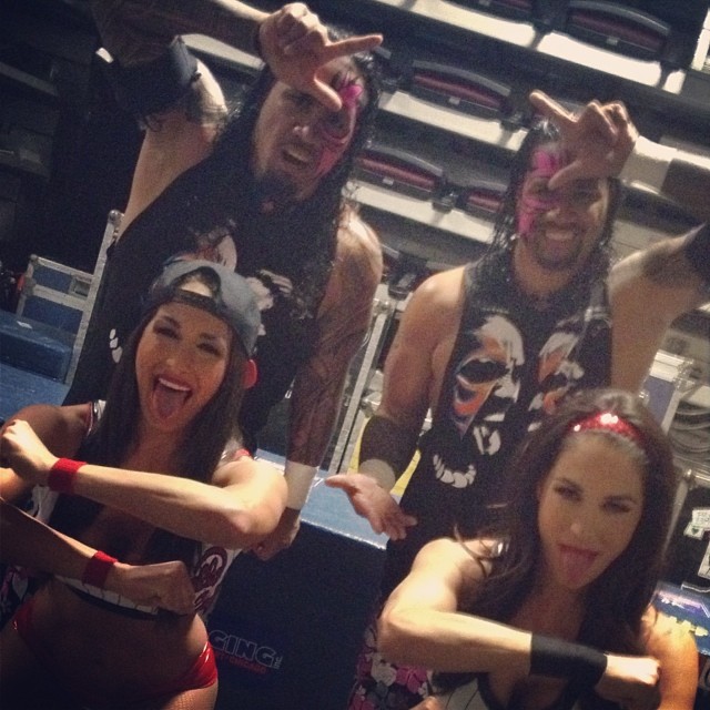 Wrestling is a family affair. We’ve not only seen several generations of wrestlers but we’ve also seen several siblings through the years. The Harts had brothers Bret and Owen (and, one time at the Survivor Series 1994, Bruce and Keith) along with brothers-in-law ‘The British Bulldog’ Davey Boy Smith and Jim ‘The Anvil’ Neidhart. There’s tag team brothers like Rick and Scott Steiner, Matt and Jeff Hardy, Nick and Matt Jackson aka The Young Bucks and Bubba Ray and D-Von Dudley, The Dudley Boys (Papa Dudley was a Rolling Stone). But rarely have we seen twins. Right now, in the WWE, there are 2 sets of Twins: Jimmy and Jey Uso and Nikki and Brie Bella. Back in January WWE’s Instagram account captured, the wonder of this double twin magic