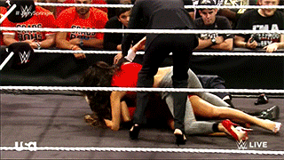 JJ tries to separate Brie and Nikki Bella. Nikki ends up slapping JJ in the face.