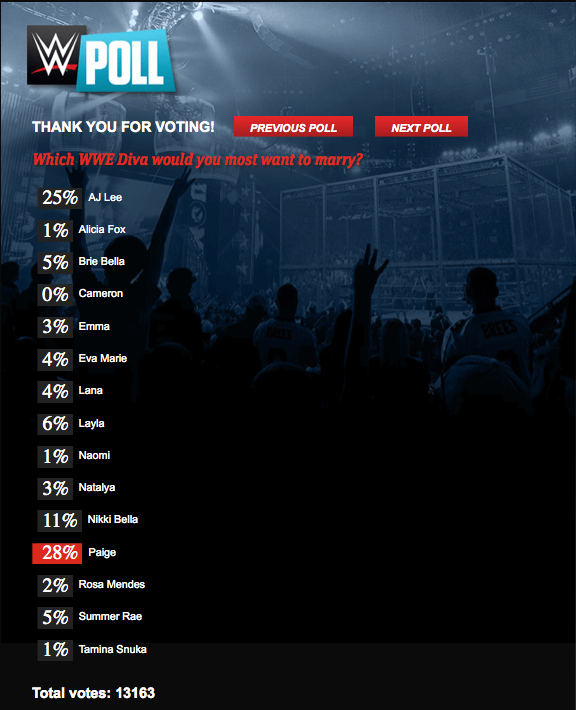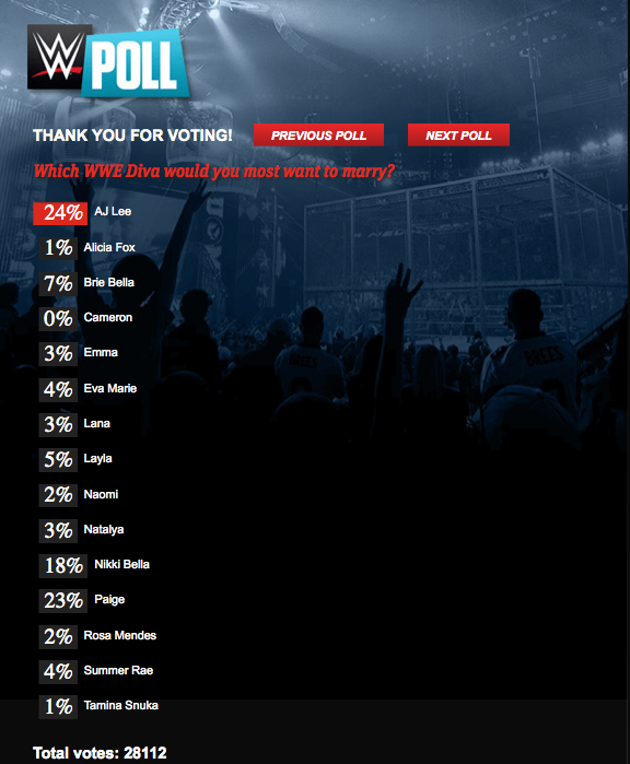 Every now and again, the WWE puts out a new poll just to entertain the WWE Universe. Usually, the vote is over the best Intercontinental Champion or which Superstars are underrated. Sometimes the polls are completely random like cheesiest entrance theme or flashiest ring attire. The current poll, “Which WWE Diva would you marry?” is a fun question in that latter category.
