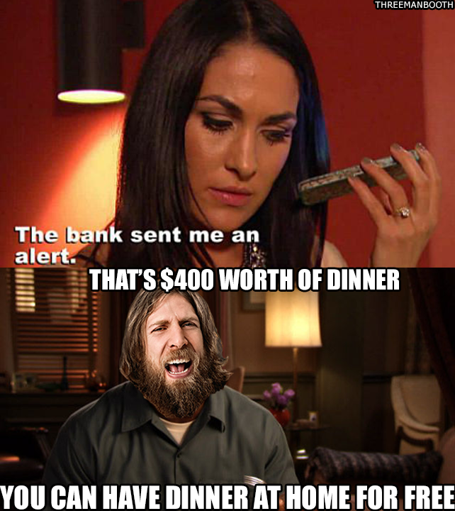 After the dinner, Brie Bella gets a call for Daniel Bryan, asking her about the $400 she spent at the restaurant. Brie Bella defends her spending and is shocked that Bryan has been tracking their finances.