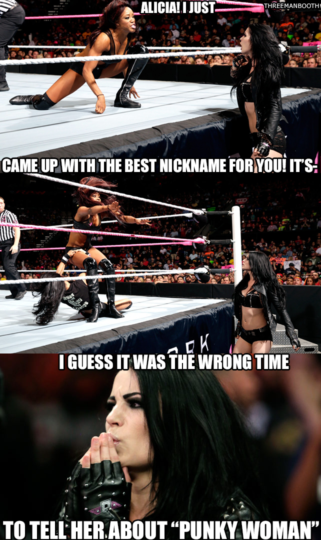 Paige attacks Alicia Fox.