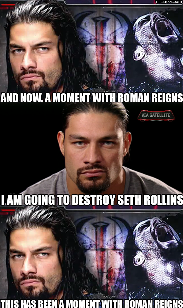 Roman Reigns says he’s great, but he’s getting stronger everyday. But he is doing anything to be in San Antonio. Reigns says Ambrose/Rollins was complete carnage and that they tore the house down. Reigns calls Ambrose his boy and calls Rollins a weasel. Reigns says Rollins hides behind everyone including Bray Wyatt. Reigns mentions that Seth Rollins calls himself the future, but when he comes back, he’s going to make sure Seth Rollins is the past.