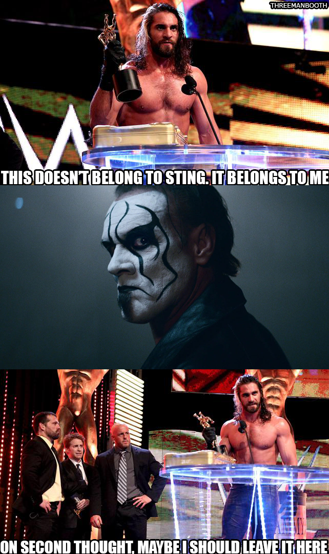 Seth Rollins flipped out and accepted the award for himself.