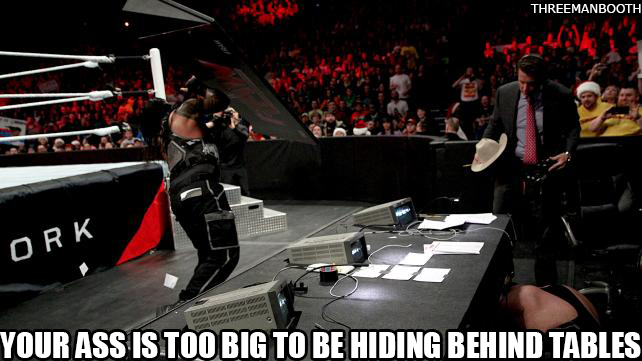 Roman Reigns hits the Apron Dropkick on Big Show.