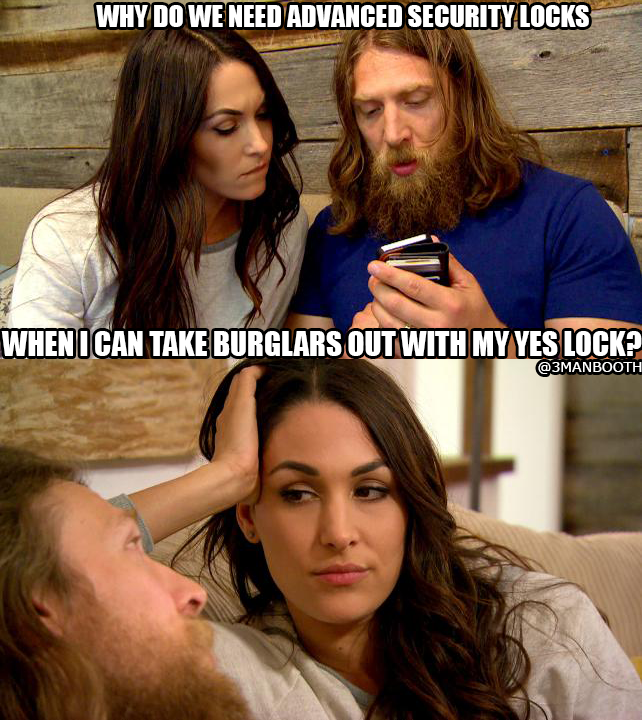 Later, Brie Bella and Daniel Bryan are messing with the alarm system to protect their house.