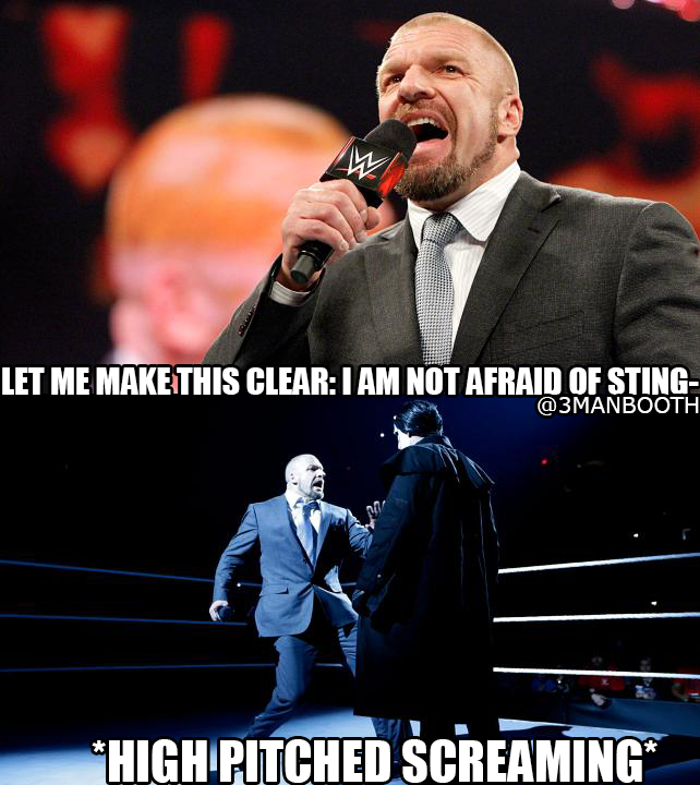 Triple H calls himself a patient man, but says his patience has run out because he’s called Sting out for 2 weeks and has gotten no answer. Triple H demands an answer from Sting right now.