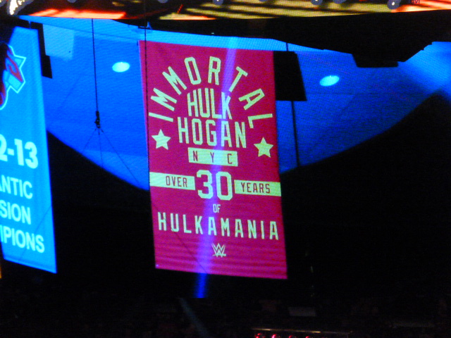 The second was a banner, to memorialize the impact Hulkamania has had in the hallowed halls of MSG over the past 30 years. The banner was raised and hung in the rafters, alongside the accomplishments of the New York Knicks, the New York Rangers and the New York Liberty.
