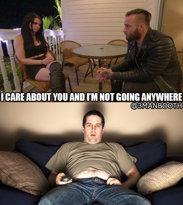 After Bradley storms out of the house, Paige tells Alicia Fox and Rosa Mendes about what just happened. Alicia and Rosa are shocked that Paige was so cold to Bradley and sympathize with him, even if Paige doesn’t want to be in a relationship. Paige starts to breakdown and open up about her emotional past relationships, where she was hurt.