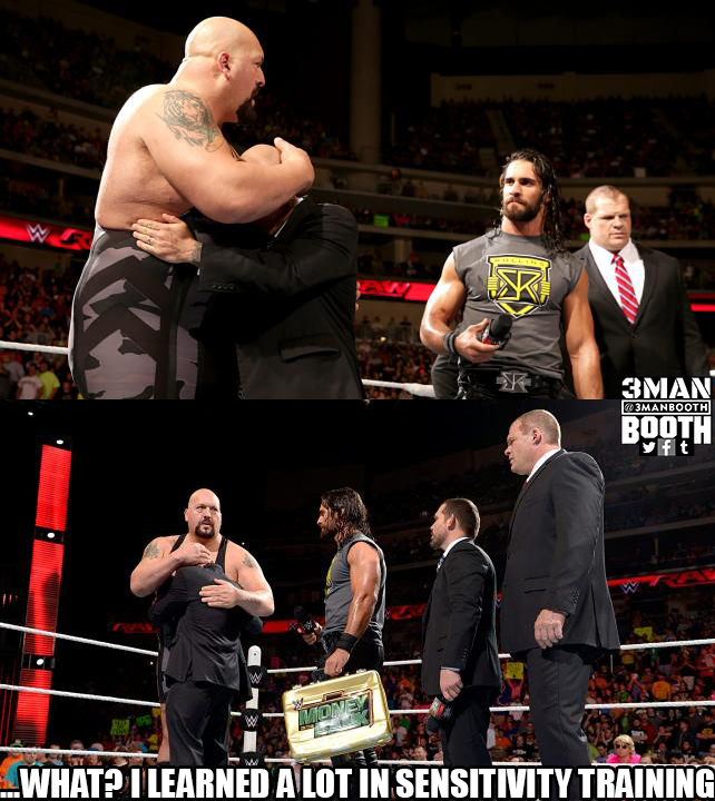 Seth Rollins reminds Big Show and Kane that this argument got them sent home last week. Rollins reminds Show and Kane that represent The Authority, which means they represent Triple H and Stephanie McMahon, and they represent Seth Rollins. Rollins asks The Authority how stupid they think they are. Big Show gets in Kane’s face, but stops him. Kane tells Seth Rollins that Stephanie can address them however she pleases, but Rollins can’t.