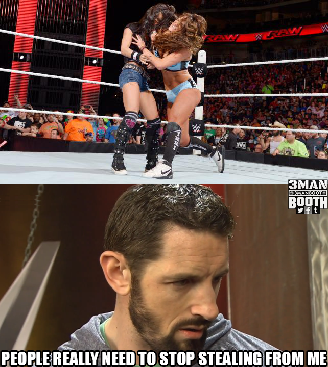 The Bella Twins talk about how AJ Lee and Paige will be unable to get along, saying Paige and AJ Lee have been friends for 5 minutes while they’ve been sisters for life. The Bellas say AJ and Paige will be humiliated at Wrestlemania. The Bellas mock “#GiveDivasAChance” by saying, Give Us A Break.