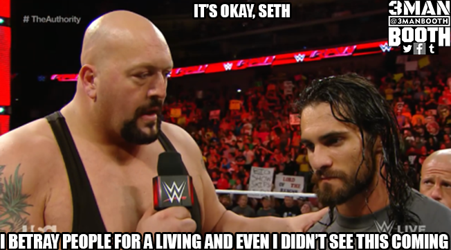 Big Show apologizes to Seth Rollins, saying he was partially responsible for this attack. Big Show says Randy Orton betrayed The Authority’s trust.