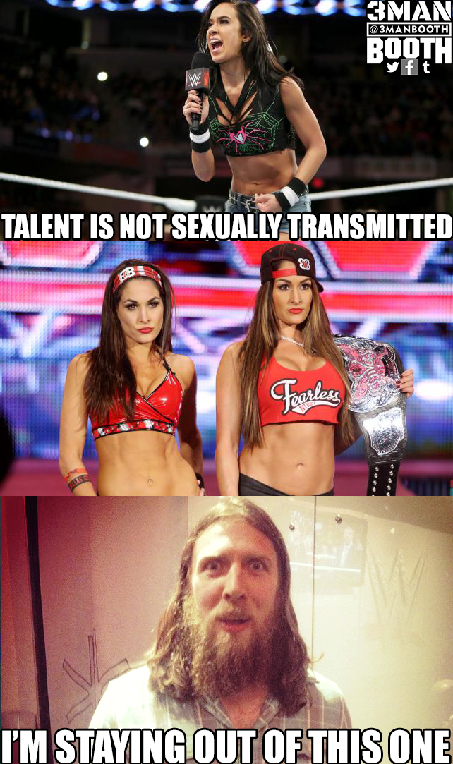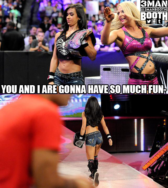 But in all seriousness, it’s no secret that we at Three Man Booth are huge fans of AJ. In the early days of Three Man Booth, posts like Fantasy GM AJ and RAW Recap Memes