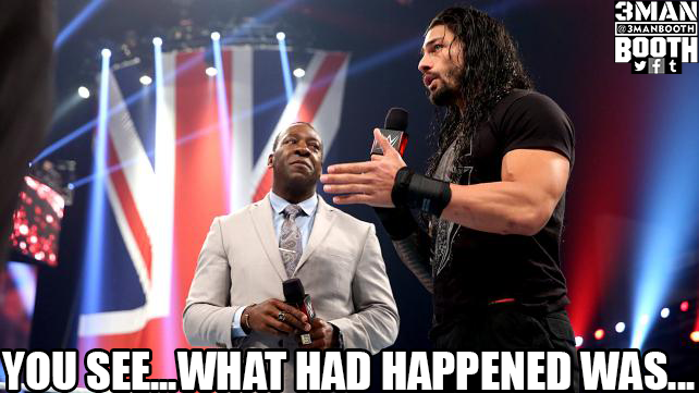 Roman Reigns says he can and he will and when it comes to Seth Rollins, he can because he has beaten Rollins in the past. Reigns says he will become WWE World Heavyweight Champion. Booker T reminds Roman Reigns that if it wasn’t for Big Show, Reigns would be facing Rollins at Extreme Rues. The WWE Universe chants “Thank You, Big Show.”