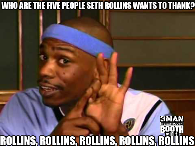 Seth Rollins thanks…Seth Rollins, then Seth Rollins, then Seth Rollins.