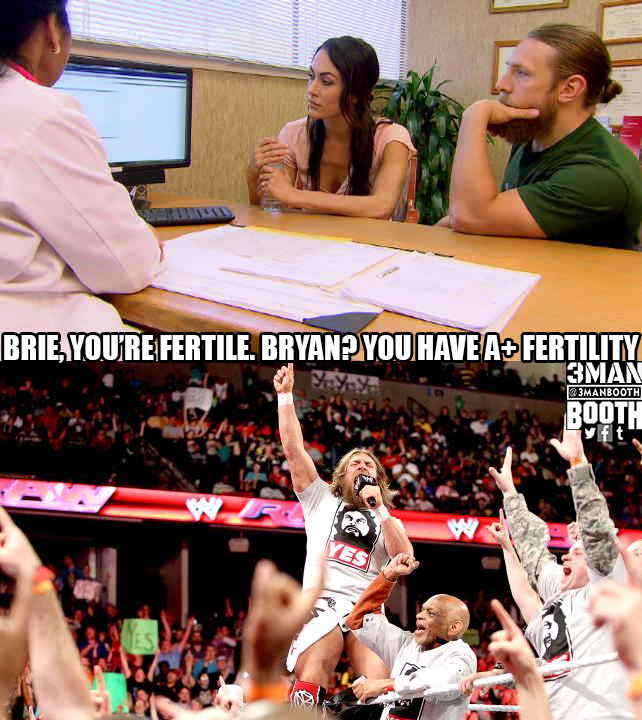 A week later, Brie Bella and Daniel Bryan go to see the Fertility Doctor. Brie finds out that she’s fertile. Daniel Bryan finds out that he’s super human fertile.