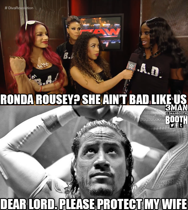 Backstage: Jojo asks Team B.A.D their thoughts on The Submission Sorority. Sasha Banks reminds Jojo that last week, she made Paige tap out. Naomi says it’s time for Team Bad to make another statement. Naomi challenges Paige tonight. Naomi brings up Ronda Rousey, saying that they’re the baddest women on the planet. Not her.
