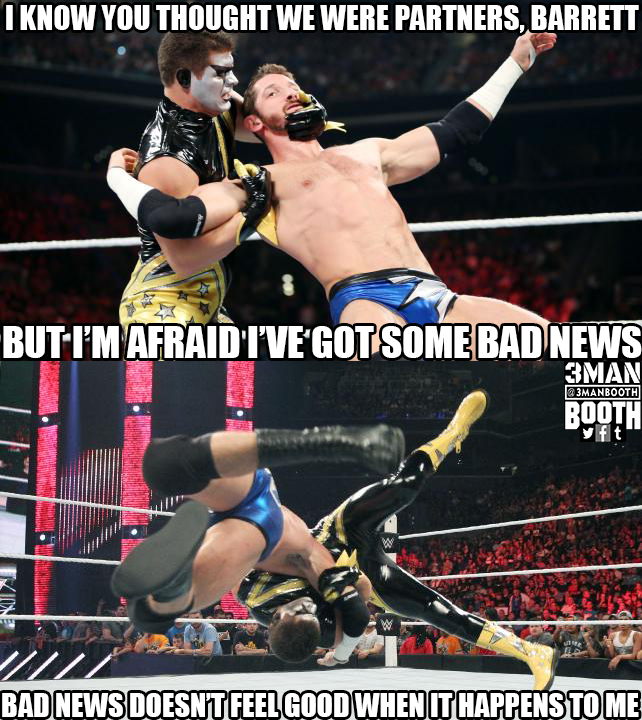 Next, Stardust and King Barrett are scheduled to team up, but Stardust turns on Barrett.