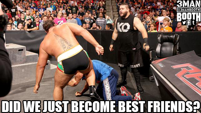 After the videos, Ashley continues the evaluation, saying Kane is sound of mind and capable of doing his duties as the Director of Operations. After Ashley calls Kane the perfect WWE Employee, Seth Rollins snaps. Ashley thinks Rollins needs an evaluation and calls him the most unprofessional person she’s met in WWE.