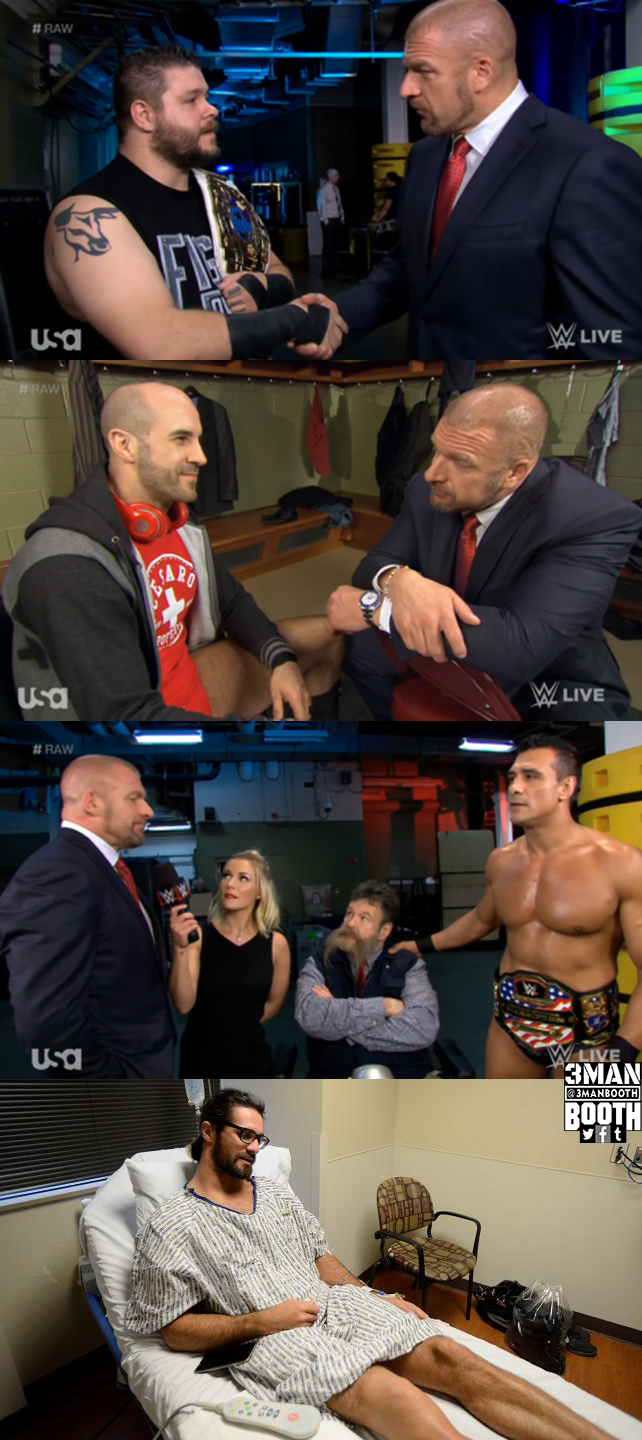 Throughout the show, Triple H goes to multiple opponents in the tournament, hoping to find his next guy.