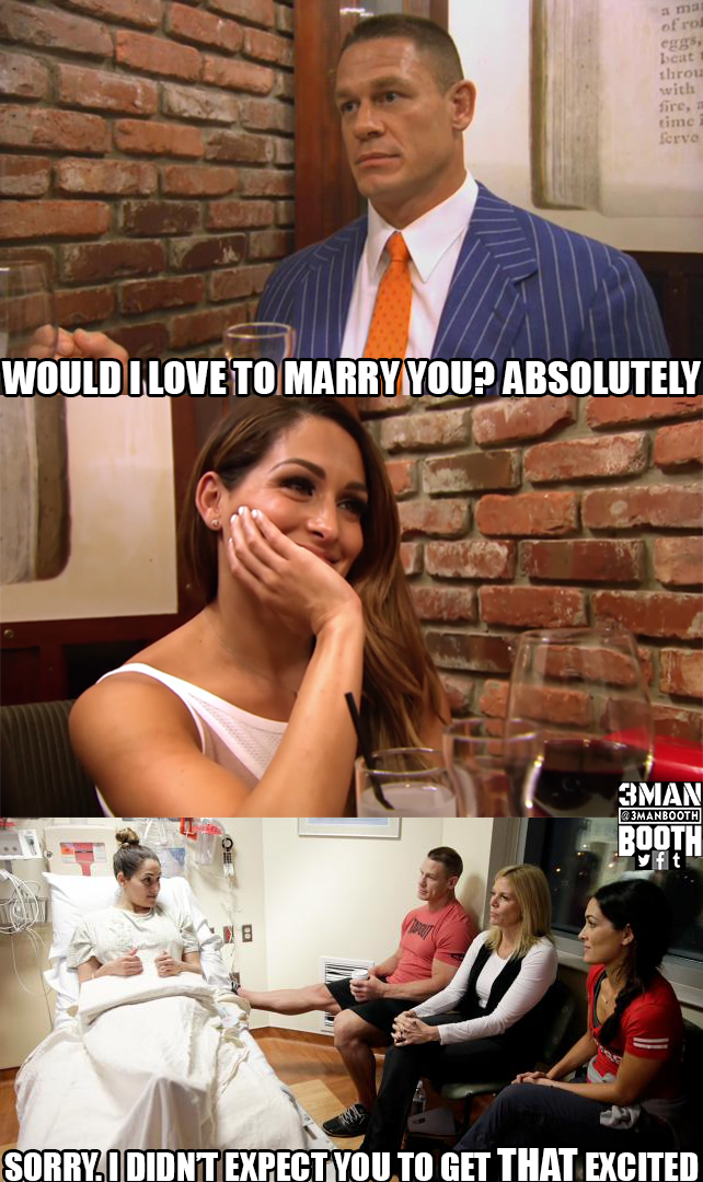 Nikki wants to know where Cena stands on the marriage situation. Cena says that at this point, would he love to marry Nikki? Absolutely. He loves her, more than he’s ever loved anyone in his life.