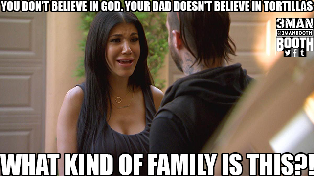 Rosa finds out that Bobby’s Dad doesn’t like fajitas. Good to know: Rosa almost made fajitas for dinner. Rosa’s Mom asks about the baptism. She believes that’s the first thing you have to do. Bobby starts to explain his position. He then steps out because he feels awkward and weird.