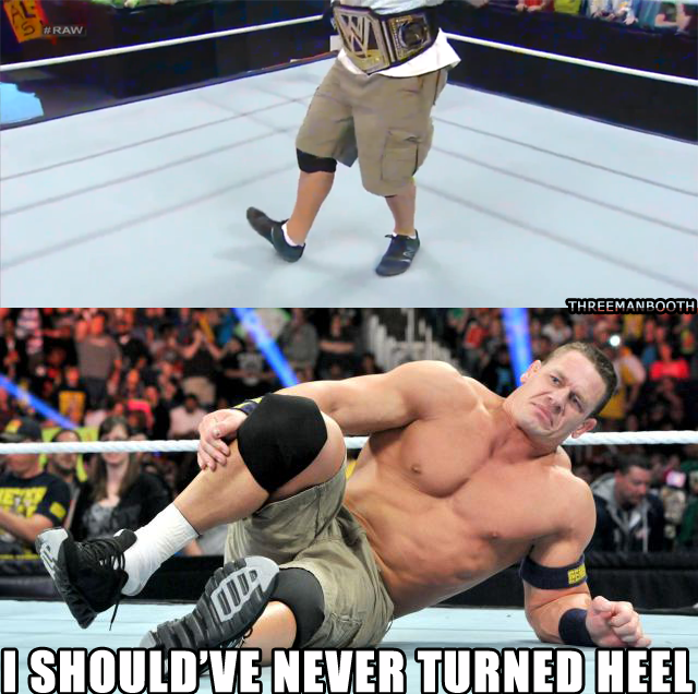 John Cena comes in and cleans house. Seth Rollins dives at him but gets caught and set up for the AA.