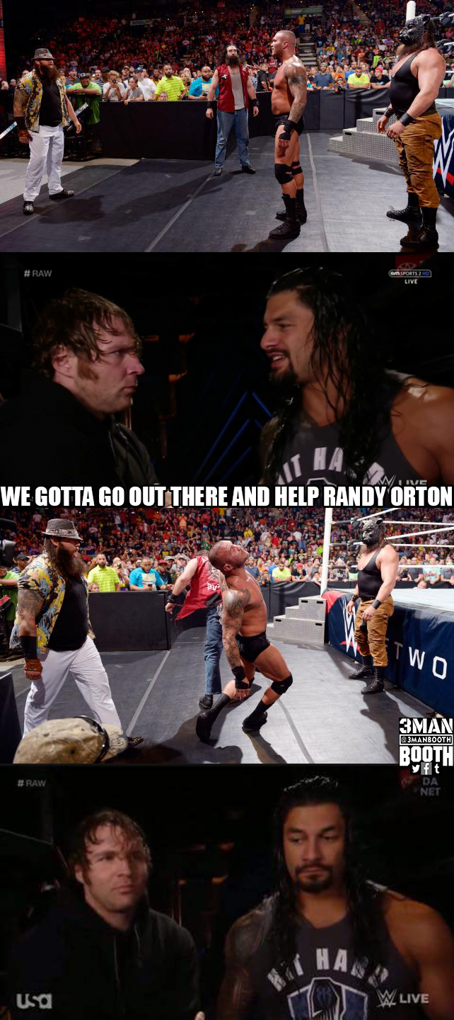 Seth Rollins tries to defend himself by comparing his situation to Evolution and Triple H and Ric Flair. Rollins thinks Triple H was the man in his time, but now Rollins is the man.